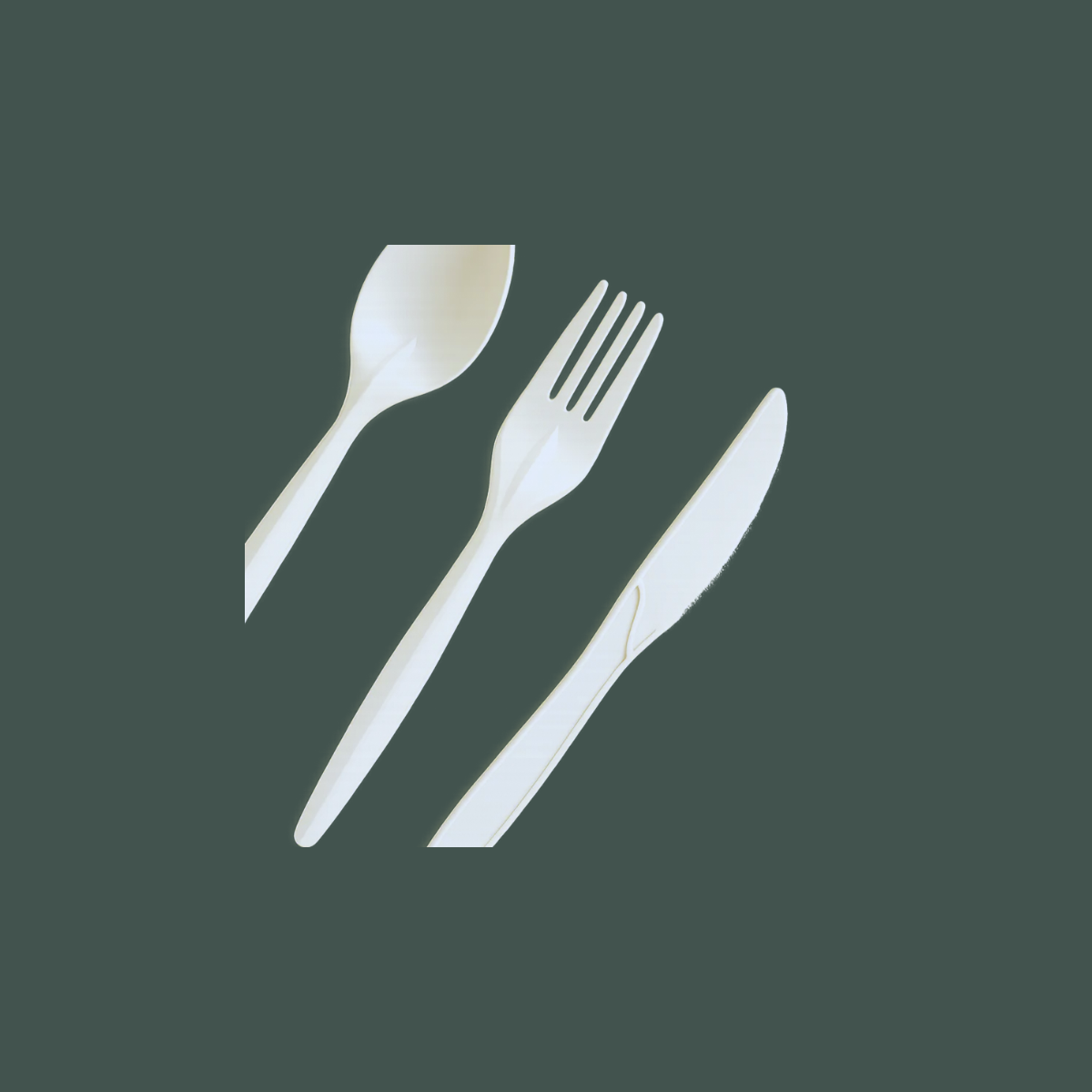 Cubiertos elaborados con fécula de maíz, 100% compostables y resistentes. Disponibles en presentaciones individuales de tenedor, cuchara, cuchillo y cuchara pastelera. Ideales para complementar cualquier platillo en pedidos para llevar, eventos o servicio en sitio con enfoque ecológico.